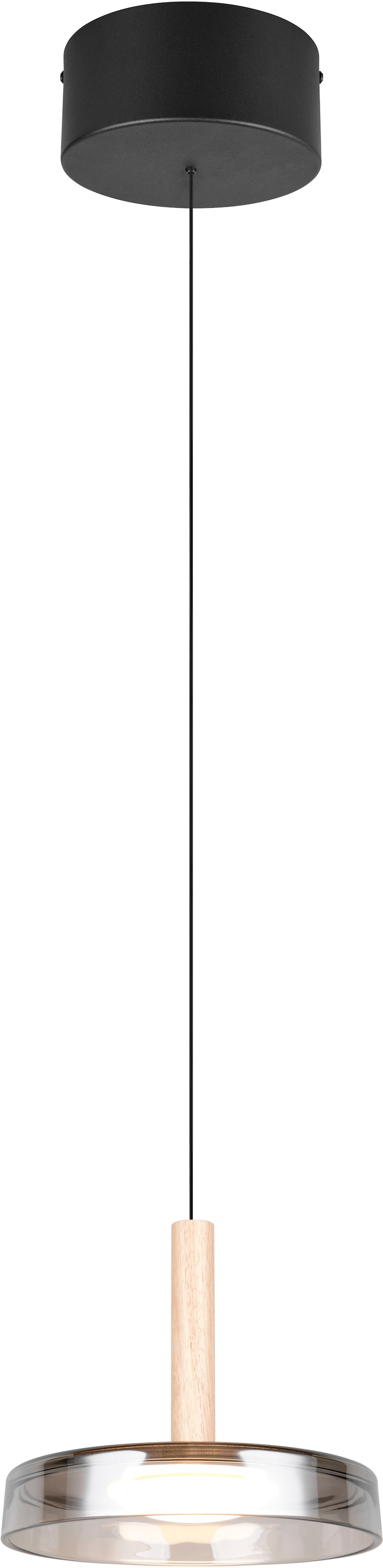 TRIO LEUCHTEN LED Pendelleuchte "CELESTE dimmbare LED Hängelampe aus Metall Glas & Holz, 10W 1100 Lumen", schwarz (schwarz matt), 1, Ø 22cm H: 200cm, 1 Stk., Leuchten, einfach höhenverstellbar von 50-200 cm, Ø 22cm, 3-Stufen Dimmfunktion
