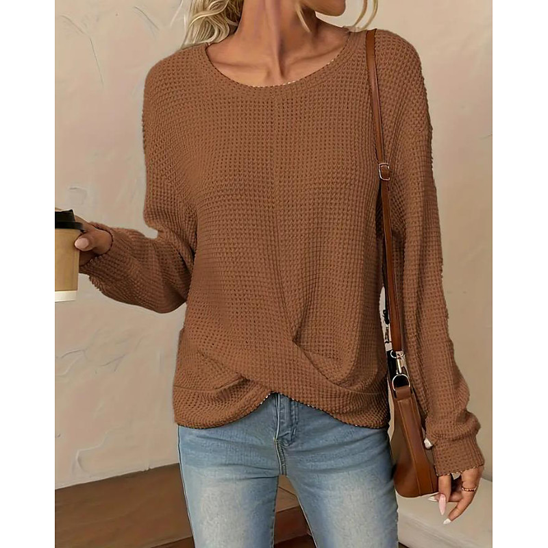 Women's Dressy Tops Long Sleeve Crew Neck Blue Khaki Beige Fall Winter