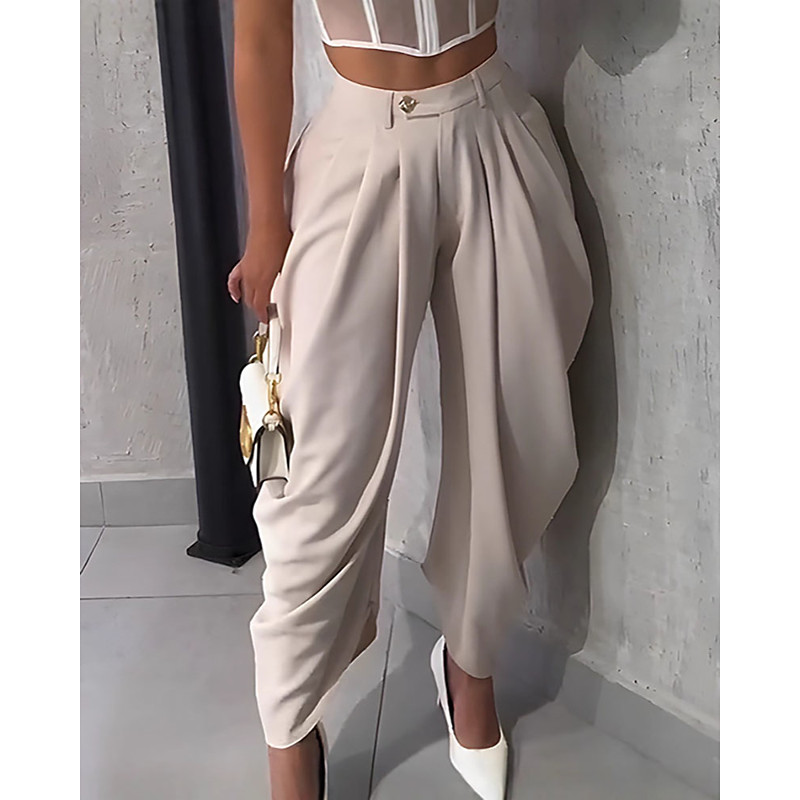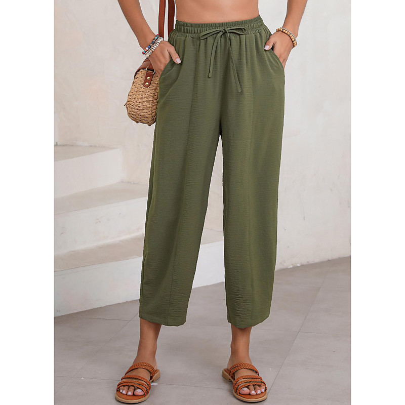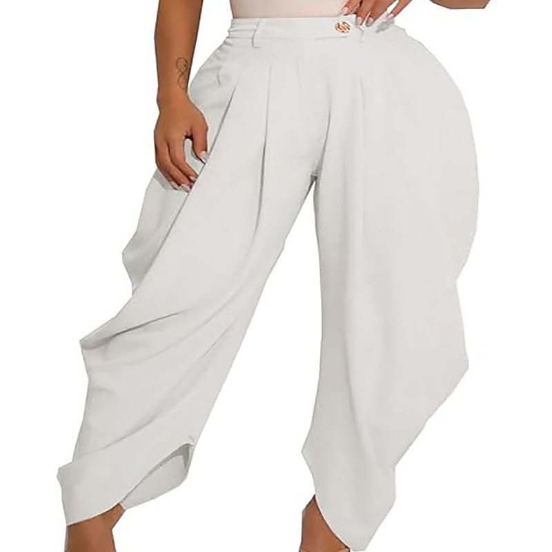 Women's Chinos Palazzo Pants Vacation Streetwear Casual Ankle-Length Medium Waist Plain Patchwork Comfortable Micro-elastic Daily Outdoor Vacation rice white Apricot Black White Summer Spring Fall