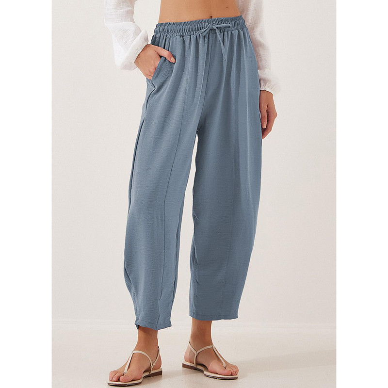Women's Straight Vacation Vintage Ethnic Style Ankle-Length High Waist Plain Micro-elastic Blue dark brown rice white Black Summer Spring Fall Winter Loose Fit