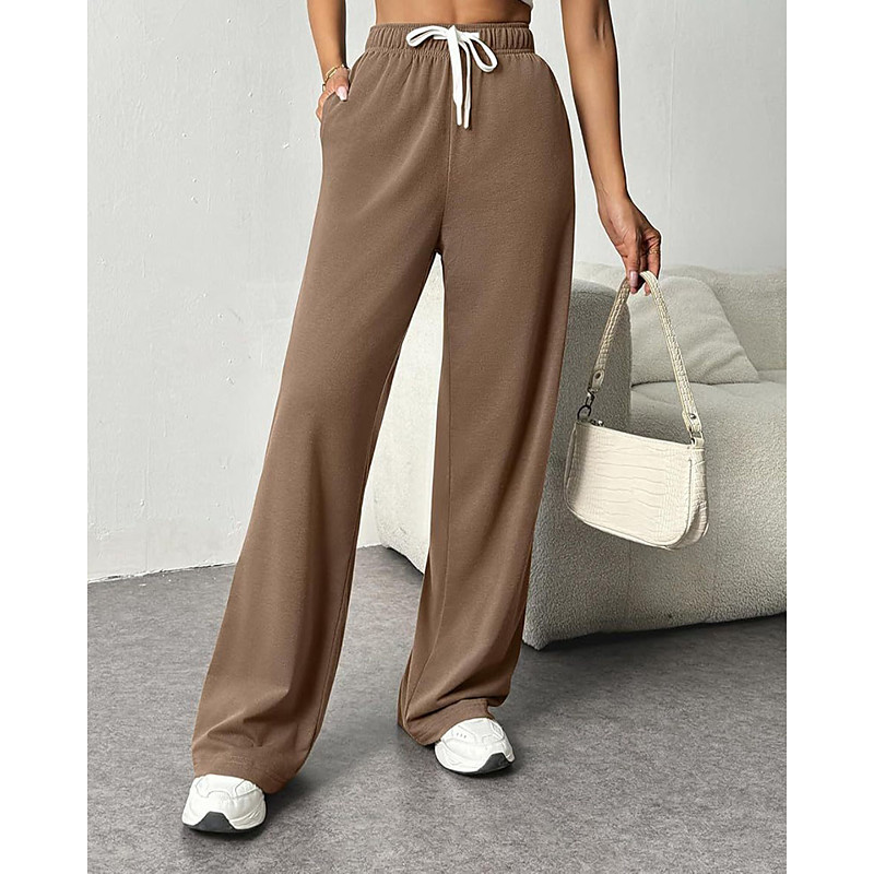 Women's Wide Leg Chinos Vacation Streetwear Casual Full Length Medium Waist Plain Elastic Drawstring Design Comfortable Micro-elastic Outdoor Vacation Daily Dark-Gray rice white Grey Black Fall