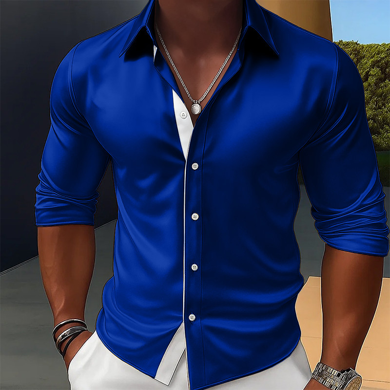 Men's Shirt Satin Shirt Dress Shirt Casual Shirt Button Up Shirt Prom Shirt Plain Formal Wedding Black Royal Blue Gold Long Sleeve Lapel Spring Fall All Seasons Clothing Apparel Patchwork