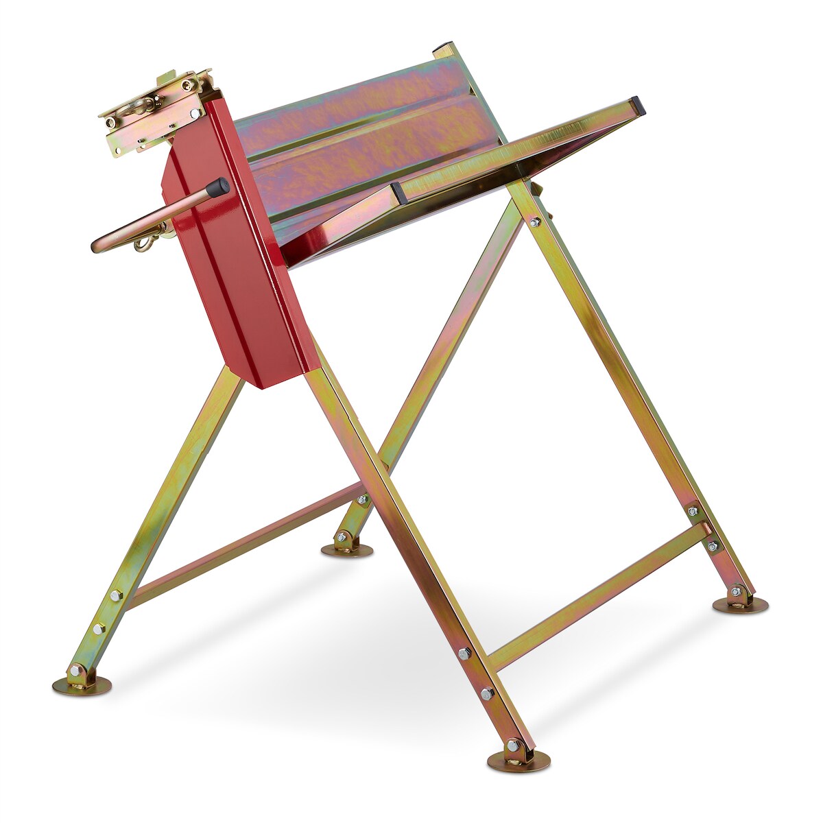 Relaxdays Sägebock mit Kettensägenhalterung, Kettenschutz, Messstab, bis 120 kg, klappbares Sägegestell, Metall, gold