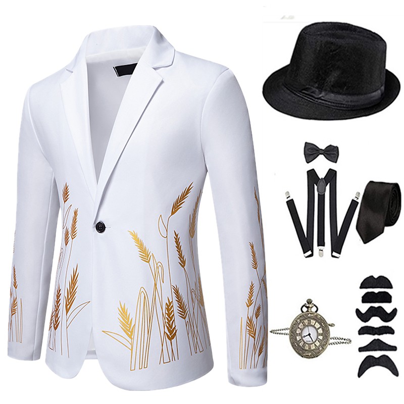 1920s Vintage Inspired The Great Gatsby Party Costume Accessories Set Printing Collarless Fancy Dress Men's Halloween Party Evening Casual Daily Adults' Coat All Seasons