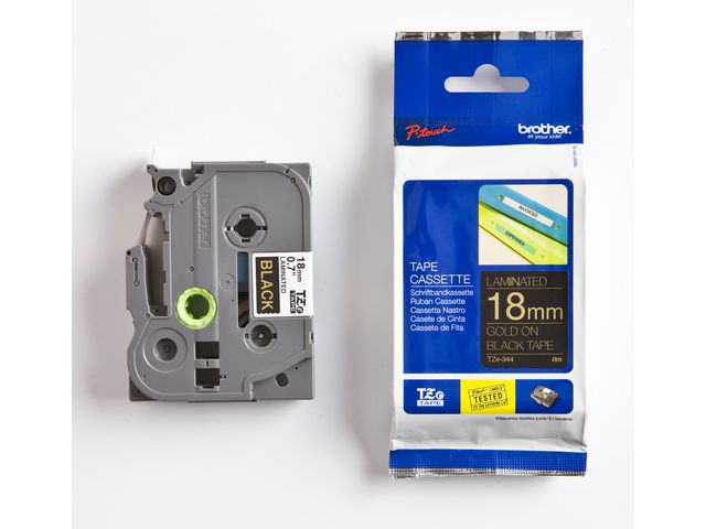 Brother Tape TZE344 18mm guld på svart