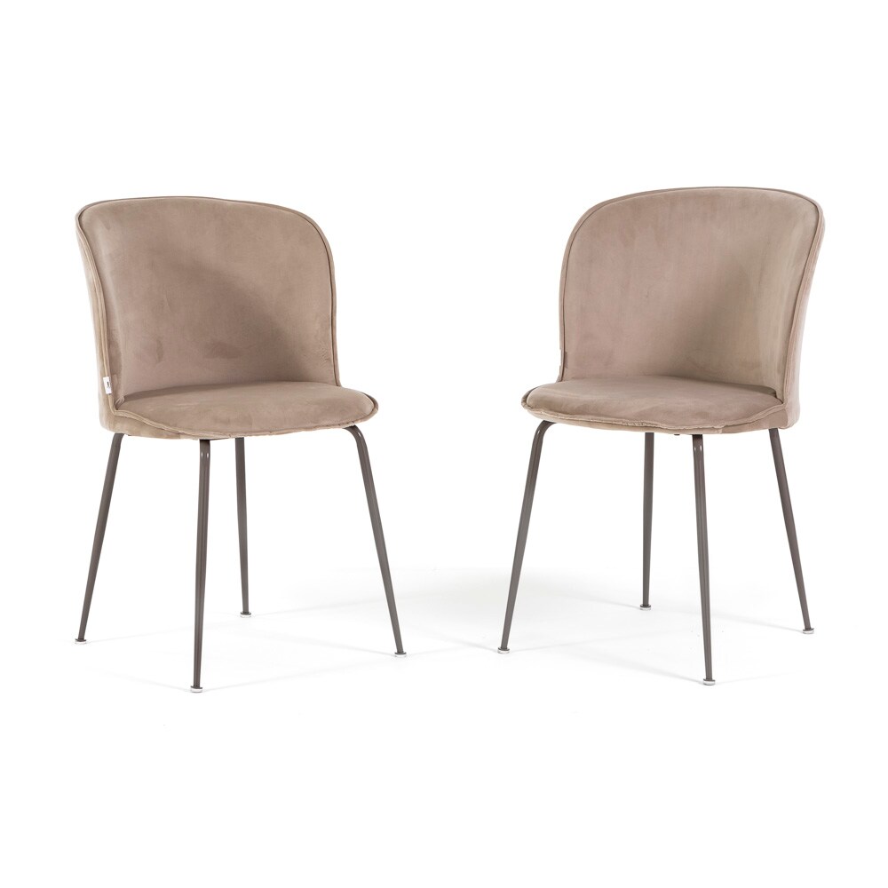 RATTATAN Set aus 2 Samtstühlen für den Innenbereich,hohe Rückenlehne,Metallbeine,ideal für Küche,Esszimmer,Bar oder Restaurant–Beige/Taube–Tessa
