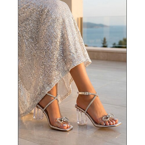 sandali con tacco a spillo in cristallo da donna - scarpe aperte con cinturini in strass e tacco a blocco trasparente, stile elegante e chic per gli ospiti che partecipano ai matrimoni