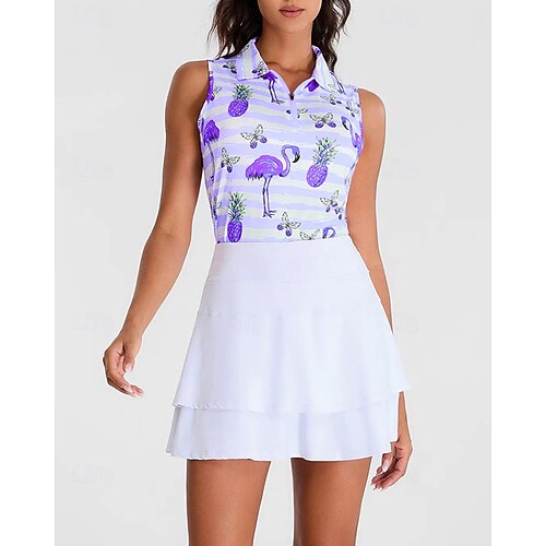 Per donna Grafico Floreale Tropicale Maglietta sportiva Polo da golf Maglia da tennis Senza Maniche Cerniera Alta elasticità Traspirante Tennis Golf Pickleball Collo ripiegato Collo con zip Maglietta