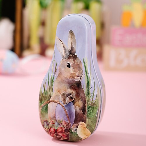 1 scatola di latta a forma di uovo di coniglietto pasquale, contenitore per caramelle regalo per bambini, grazioso contenitore in metallo per dolcetti, bomboniera per le feste, scatola portaoggetti