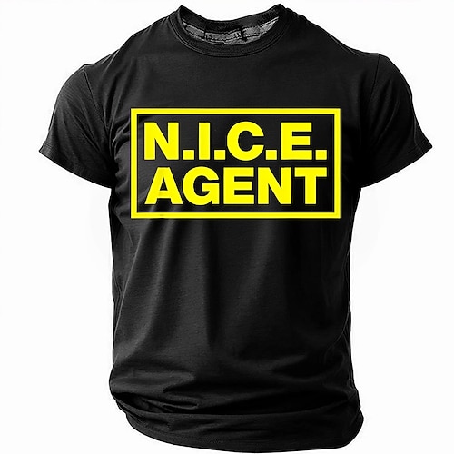 T-Shirt Grafica Uomo N.I.C.E. Agente Maniche Corte Umorismo Giochi di Parole Divertenti