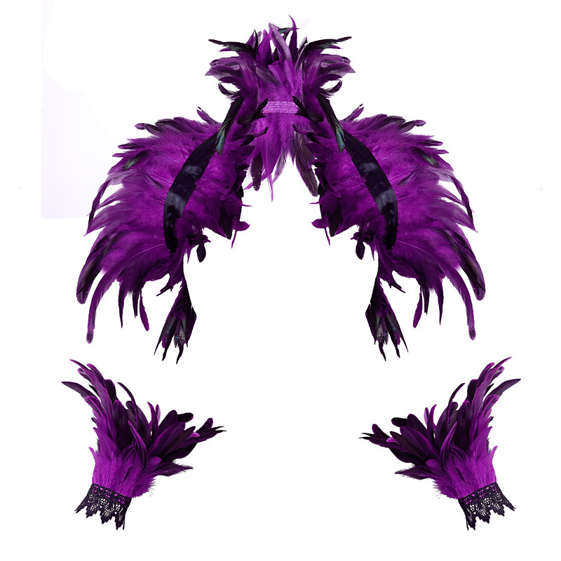 Accessori Samba Carnevale 2026 Rio Carnevale 3 pezzi Set Costume Donna Piume Mantello Piume Gotico Gonna Mini Polsini di Pizzo Lunghi Costume per Festival in Brasile