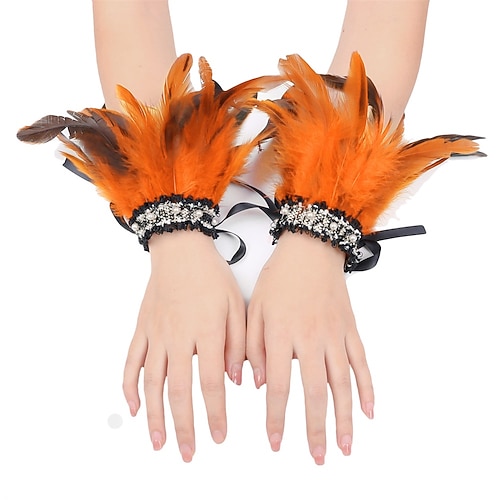 Accessori Samba Carnevale 2026 Rio Carnevale Polsini Piume Nere Donna con Nastro Ricamato Vintage Costume per Festival in Brasile