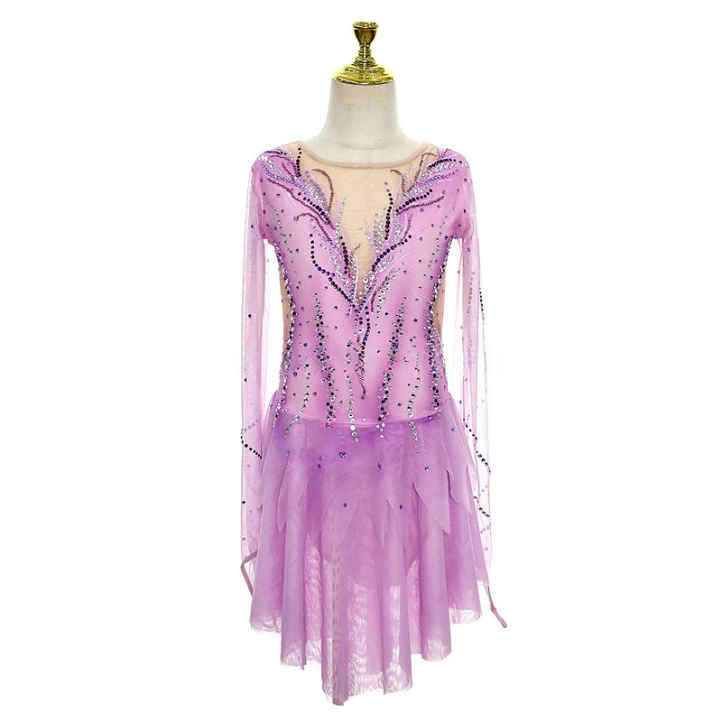 Figure Skating Dress Women's Girls' Ice Skating Dress Violet Mesh Spandex Lace Training Skating Wear Crystal / Rhinestone Figure Skating