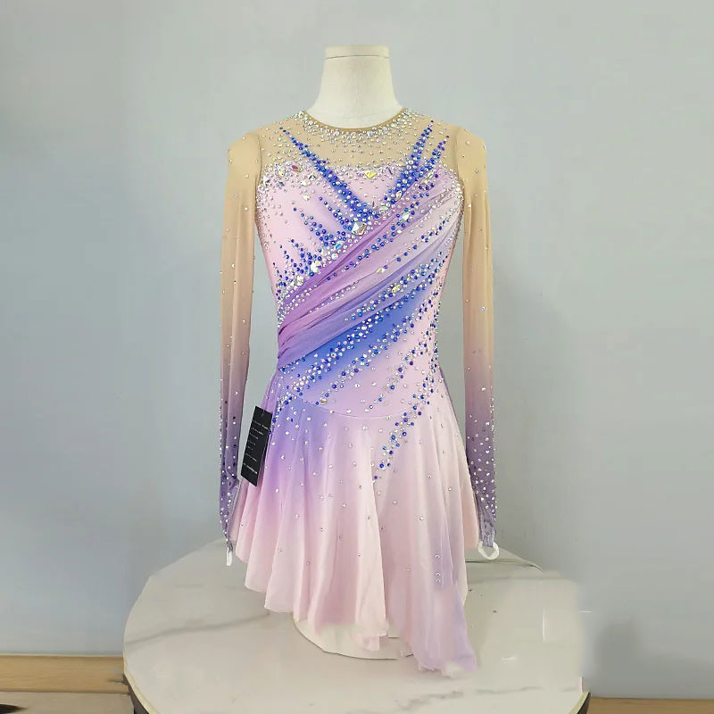Figure Skating Dress Women's Girls' Ice Skating Dress Purple High Elasticity Training Competition Skating Wear Classic Crystal / Rhinestone Long Sleeve Ice Skating Figure Skating