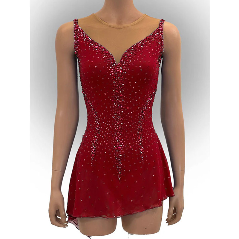 Figure Skating Dress Women's Girls' Ice Skating Dress Red Stretchy Training Competition Skating Wear Crystal / Rhinestone Sleeveless Ice Skating Figure Skating
