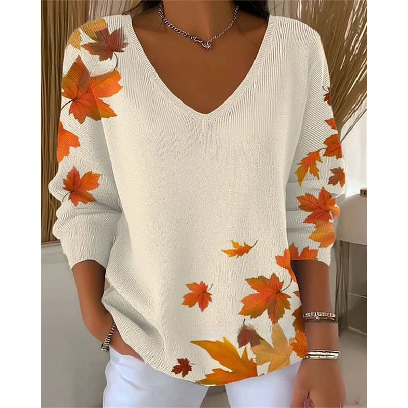 Women's T Shirt Graphic Striped Plants Elegant Fashion Cute Long Sleeve Crew Neck V Neck Regular Tops Daily Going out Weekend Patchwork Print White Yellow Pink Orange Green Spring Fall