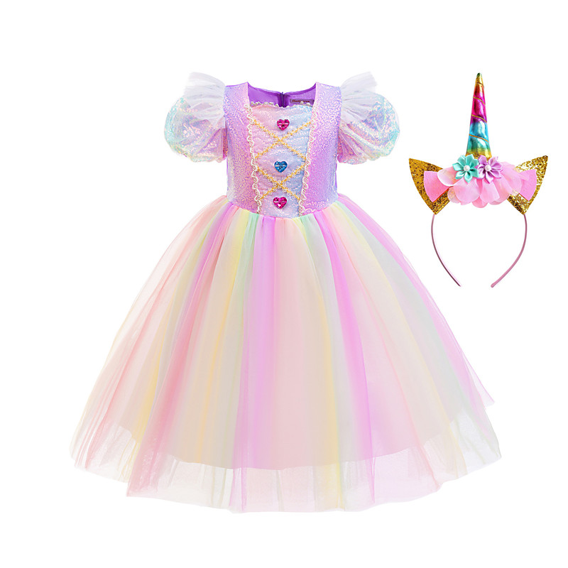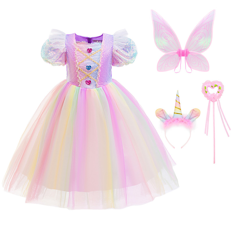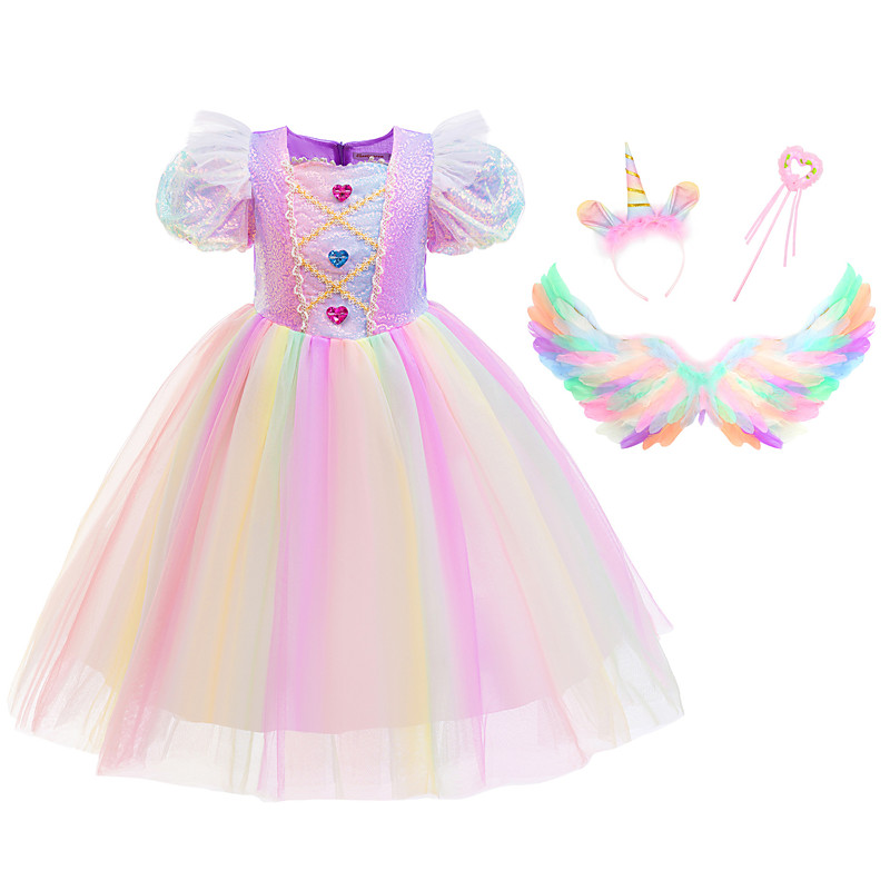Unicorn Dress Wings Headband Girls' Movie Cosplay Dance Tight Tutus Vacation Dress Golden Blue Rainbow Dress Wings Headwear Halloween Carnival Princess World Book Day Costumes