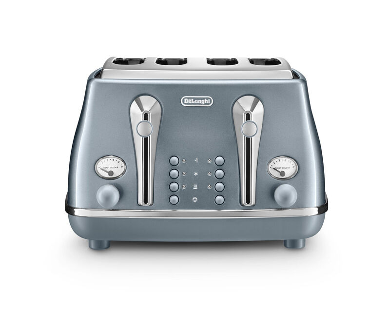 De'longhi Icona Metallics 4 Slice Toaster, Stainless Steel, Extra-Wide Slots, Blue - CTOT4003.AZ