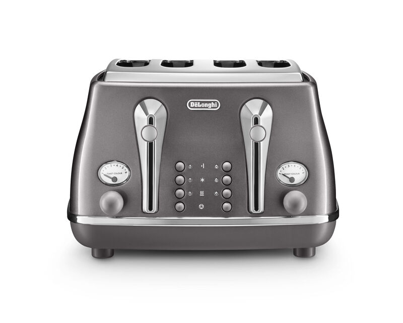 De'longhi Icona Metallics 4 Slice Toaster, Stainless Steel, Extra-Wide Slots, Grey - CTOT4003.GY