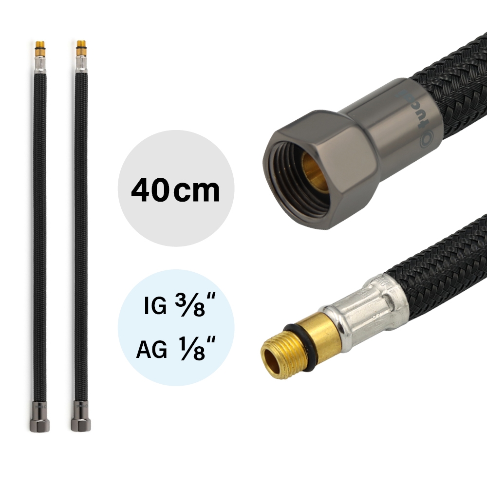 2x Flexschlauch DN8 IG 3/8`-M10x1 400mm Schwarz & Schwarzstahl