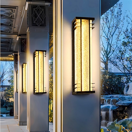 Traditionelle, wasserdichte, rechteckige LED-Wandleuchte aus Edelstahl und Acryl für die Terrasse
