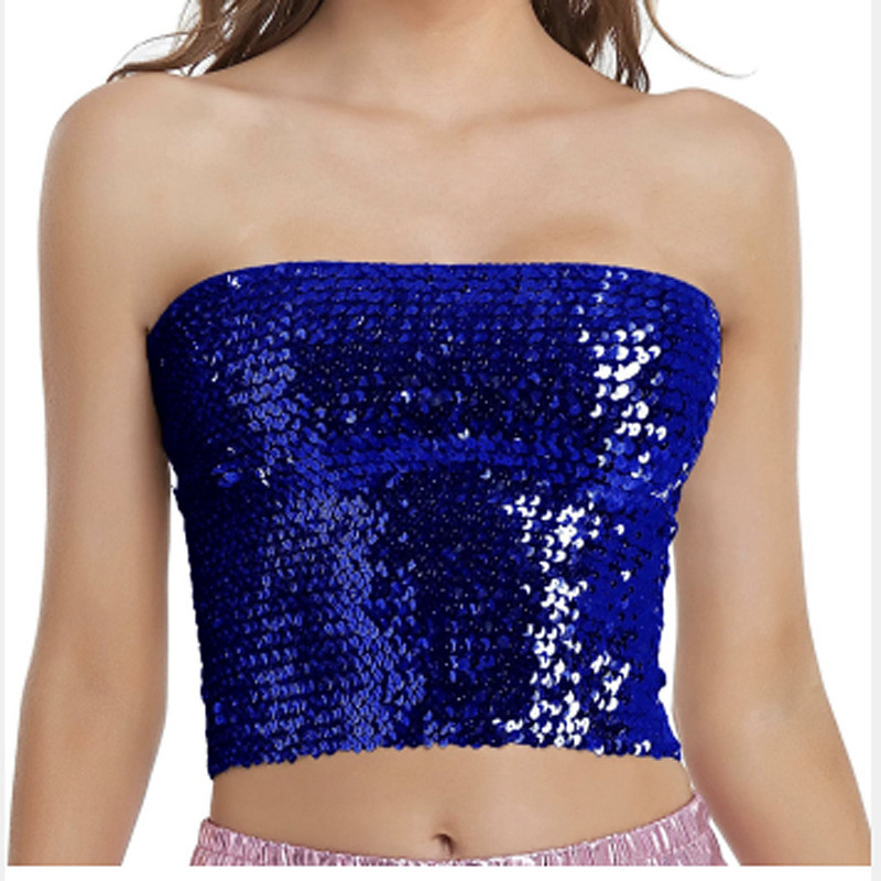 Retro Vintage 1980s Shiny Metallic Tube Top Disco Sequins Solid Color Fancy Dress Women's Carnival Costume Carnival Club Pride Parade Pride Month Adults' Top