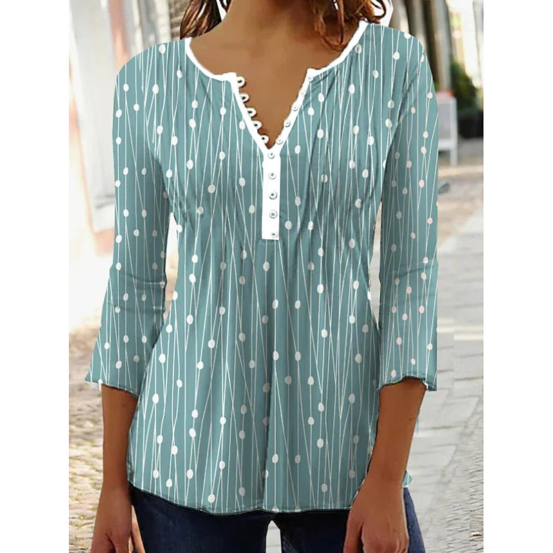 Women's Blouse Graphic Polka Dot Elegant Stylish Modern 3/4 Length Sleeve Ruffle Sleeve V Neck Regular Tops Work Daily Holiday Ruched Buttons Red Blue Green Gray Summer Spring Fall