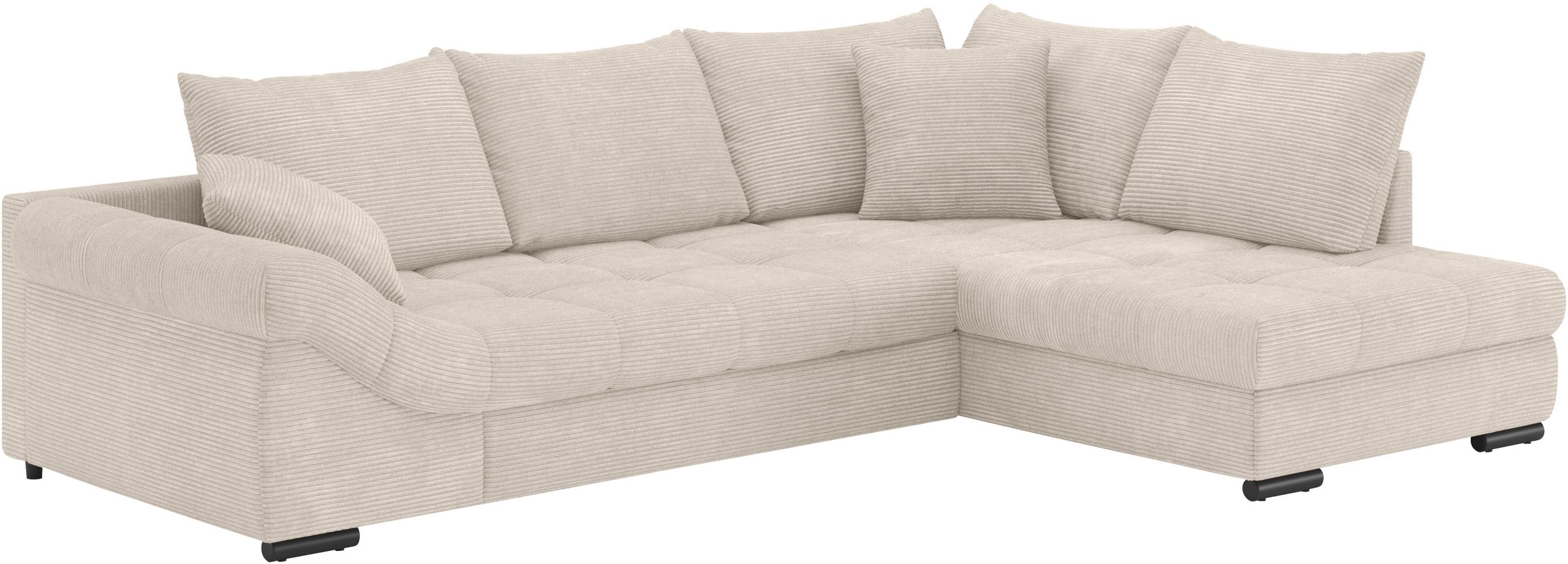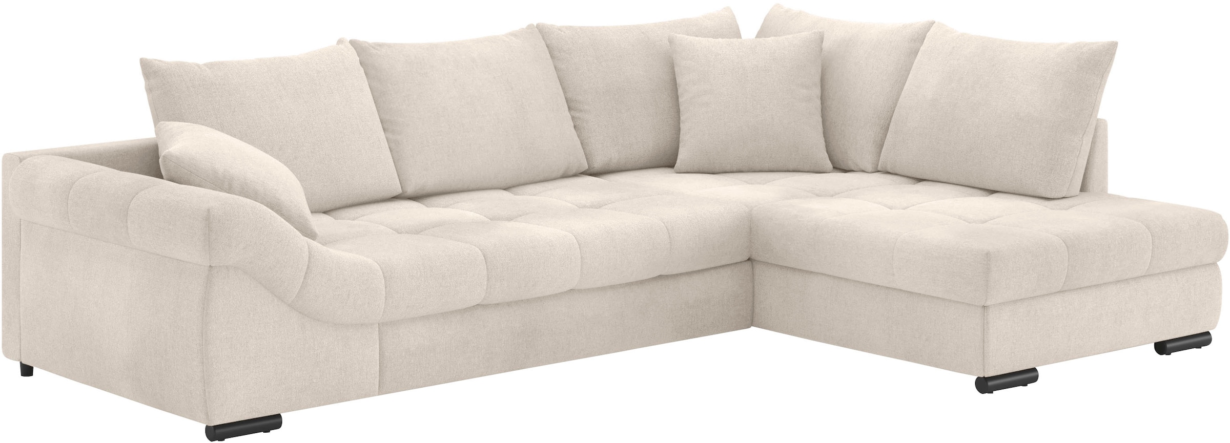 Ecksofa MR. COUCH "Allegro DuraFlex, L-Form", beige (novaclean avanti 4 ecru), B:303cm H:86cm T:202cm, Novaclean Avanti (100% Polyester), Sofas, Hochschläfer-Bettauszug, Kaltschaumpolsterung, bis 140 kg belastbar, Topseller