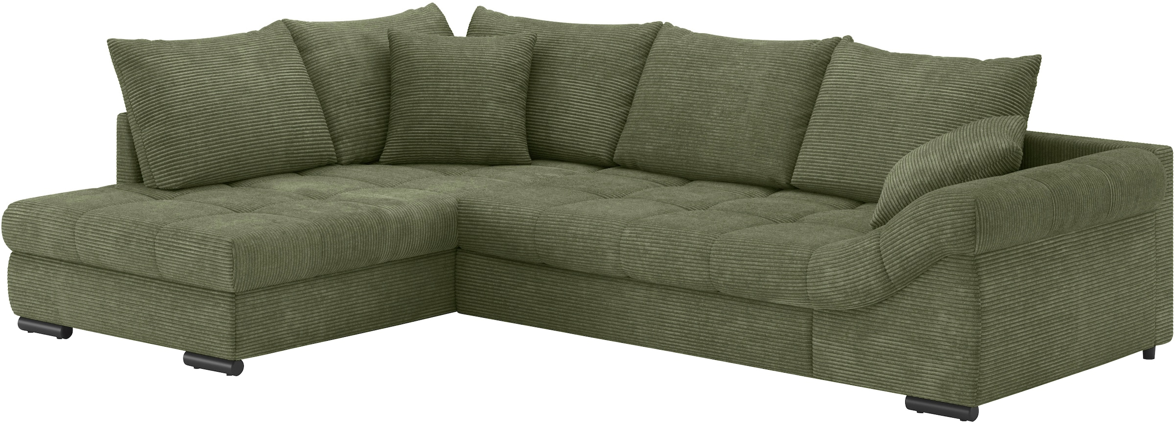 Ecksofa MR. COUCH "Allegro DuraFlex, L-Form", grün (dolce 11 grün), B:303cm H:86cm T:202cm, Dolce (100% Polyester), Sofas, Hochschläfer-Bettauszug, Kaltschaumpolsterung, bis 140 kg belastbar