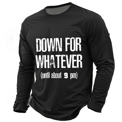 giù per qualsiasi cosa fino alle 21:00 circa maglietta divertente da uomo a maniche lunghe slogan sarcastico maglietta grafica grigio scuro abbigliamento abbigliamento s m l xl xxl xxxl