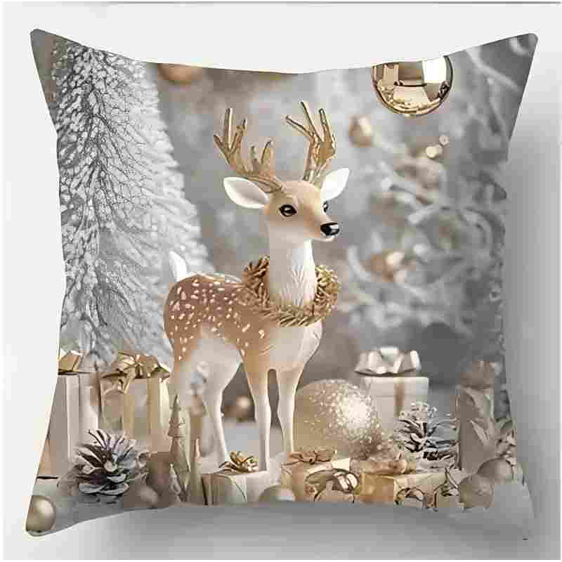 Christmas Pillow Covers, Snowman Reindeer and Snow House 2D Flat Print Decorative Cushions, Silver White Holiday Throw Pillows for Sofa Bedroom Living Room Winter Home Decor