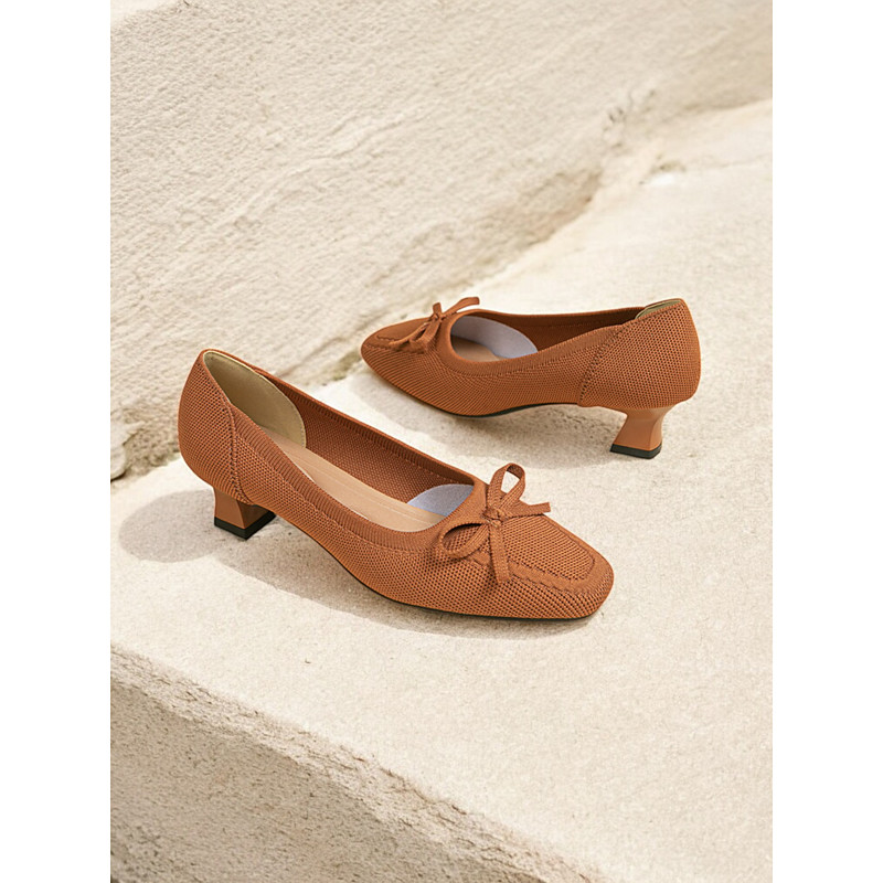 Women's Flyknit Low Heel Bowknot Pumps – Breathable Lightweight Comfort Shoes for Office, Work and Casual Wear