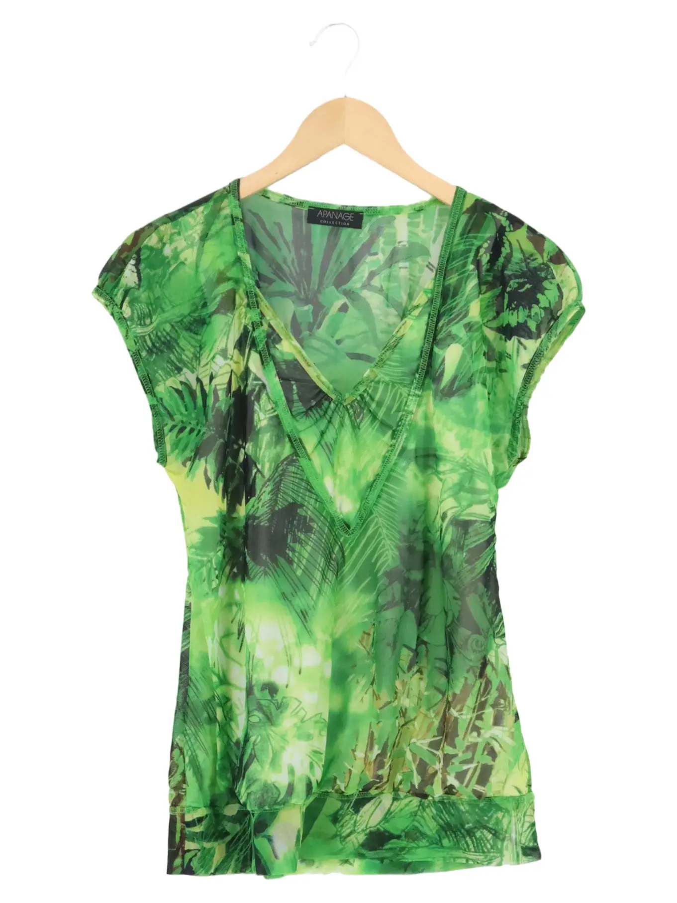 APANAGE Damen Bluse Gr. 42 Grün Tropisches Muster Acetat