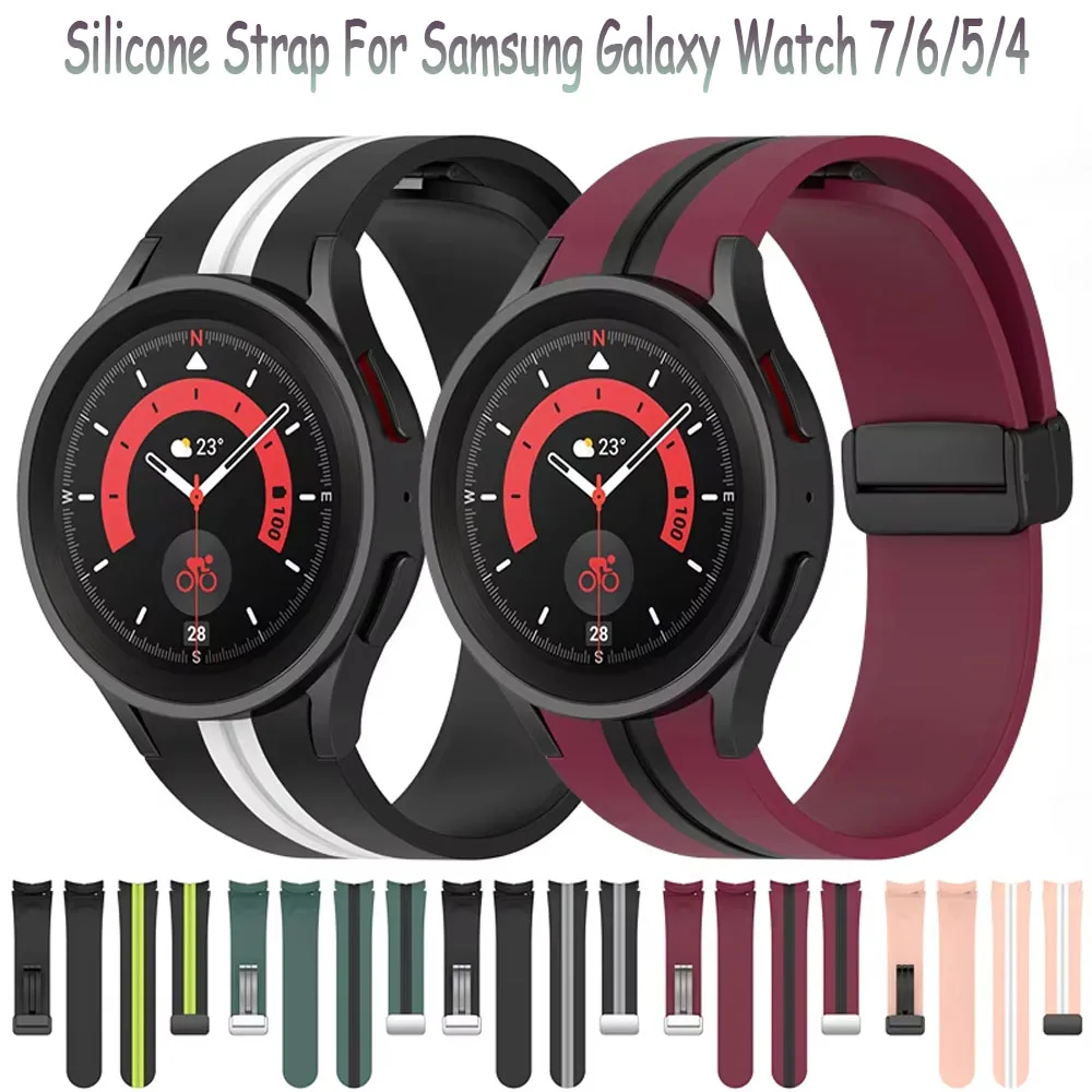 Watch Band for Samsung Galaxy Watch 7/6/5/4 40/44mm, Watch 5 Pro 45mm, Watch 6 Classic 43/47mm, Watch 4 Classic 42/46mm Silicone Replacement Strap Magnetic Clasp Waterproof Adjustable Sport Band