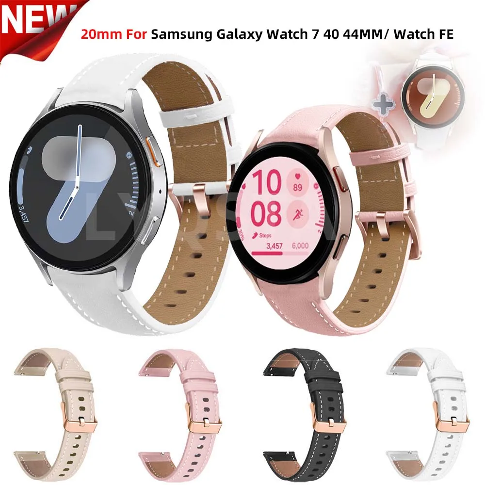 Watch Band for Samsung Galaxy Watch 7/6/5/4 40/44mm, Watch 5 Pro 45mm, Watch 6 Classic 43/47mm, Watch 4 Classic 42/46mm Genuine Leather Replacement Strap Adjustable Breathable Shockproof Wristband