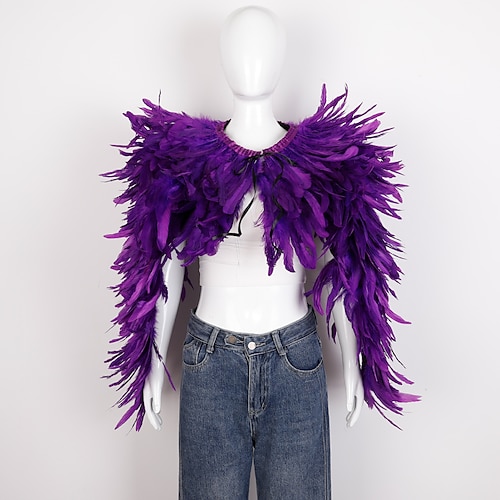 Accessori Samba del Carnevale 2026 Rio Carnevale Cappotto Sciarpa in Piume per Mardi Gras in Viola Verde Oro Poncho in Piume con Collare Gioiello per Donne Costume per Performance al Festival del