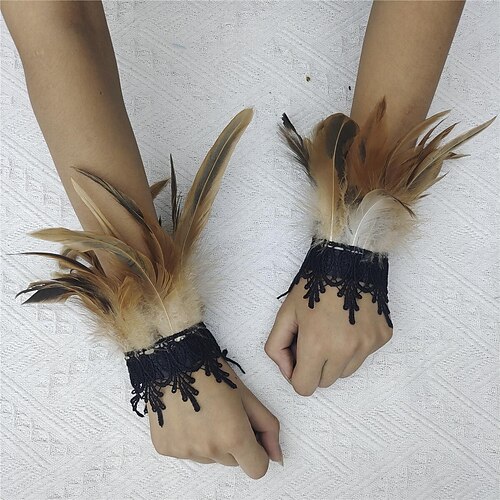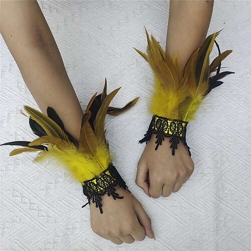 Carnival 2026 Polsini in piume neri per donne del Carnevale di Rio polsini in pizzo e nastro per braccia per costumi da festival in Brasile