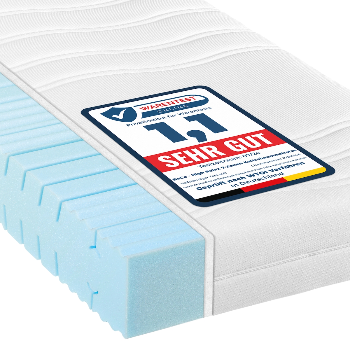 Kaltschaummatratze BeCo High Relax, 21 cm Komforthöhe, Made in Germany - Härtegrad: H2 (0 kg - 100 kg), Größe: 160 x 200 cm