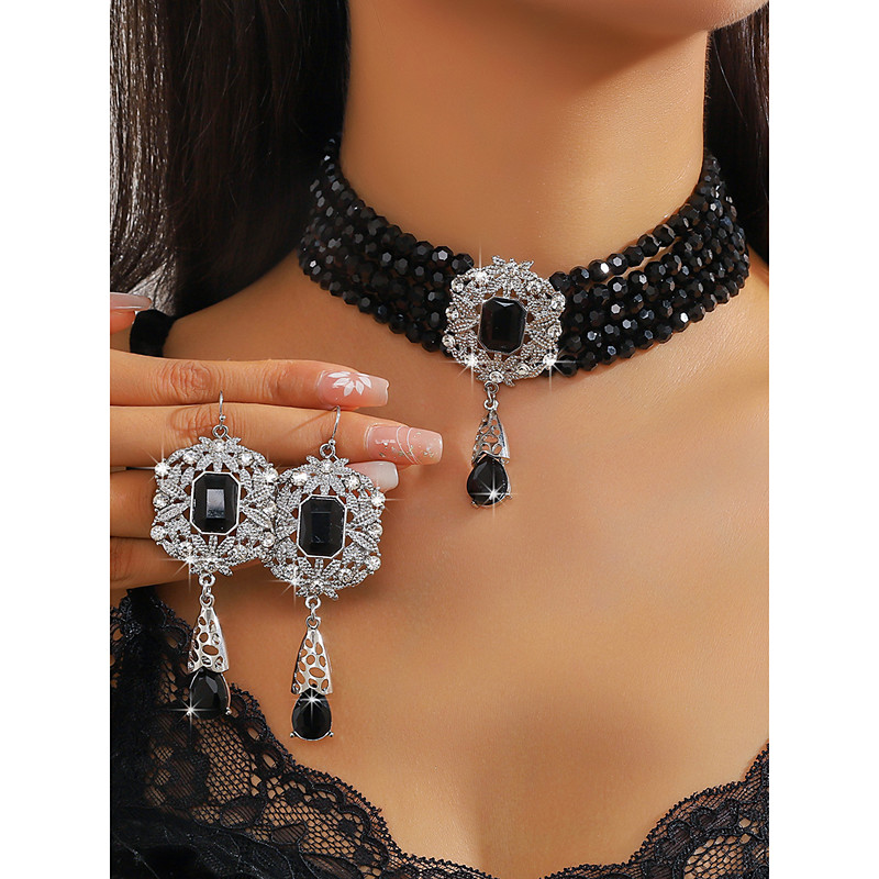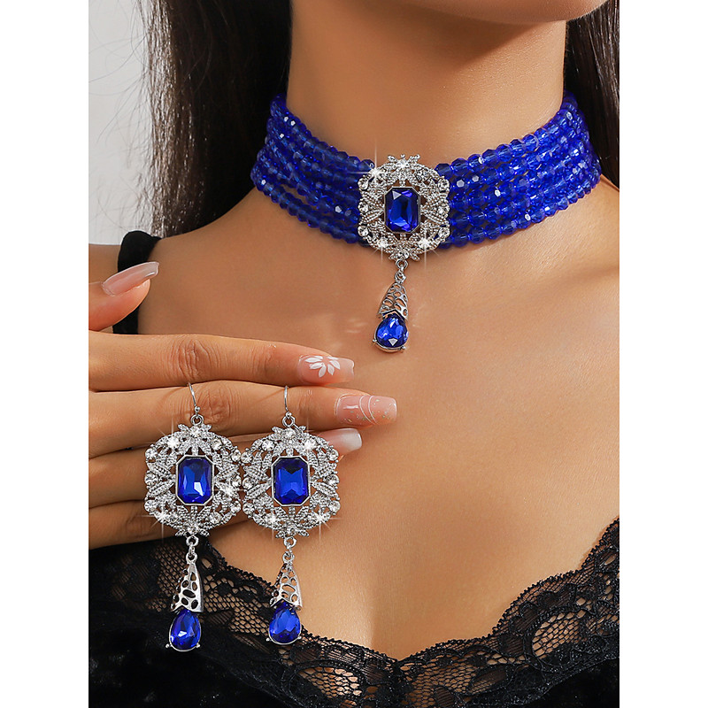 Women's Champagne Gold Beaded Choker Set for Wedding or Evening Party