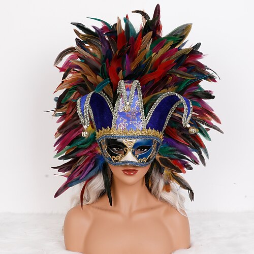Carnival 2026 Carnival Mask Jolly Clown Venetian Carnival Mask Feather Halloween Adults' Unisex Halloween Mardi Gras Carnival Party Halloween Easy Carnival Costume Dress Up