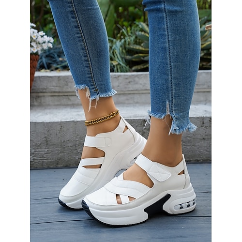 Per donna Quotidiano Tacco basso Punta Tonda Moda Finta Pelle Velcro Nero Bianco