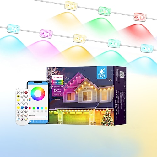 15/30/45 m RGBIC-LED-Lichterkette, IP67 wasserdicht, Bluetooth WLAN-Fernbedienung, dimmbar für Innen- und Außenbereich, Feiertage, Partys, Festivals, US-Stecker, dekorative Stimmungsbeleuchtung