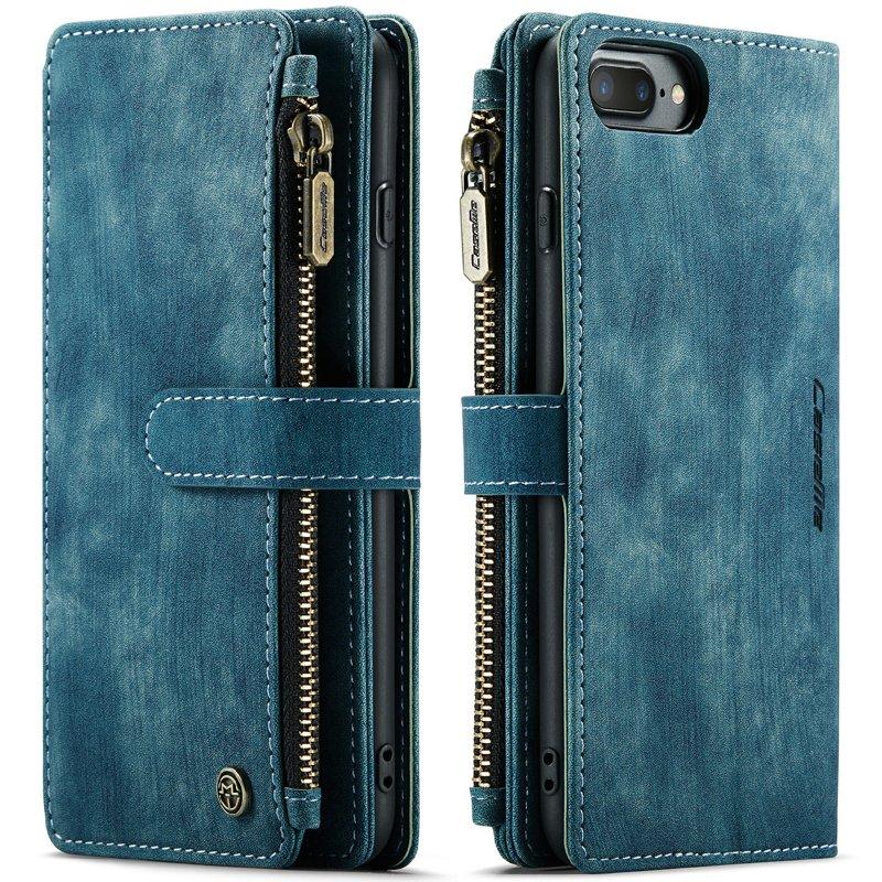 CASEME Konstläder Plånboksfodral för iPhone 6/7/8 Plus med Rem - Blå