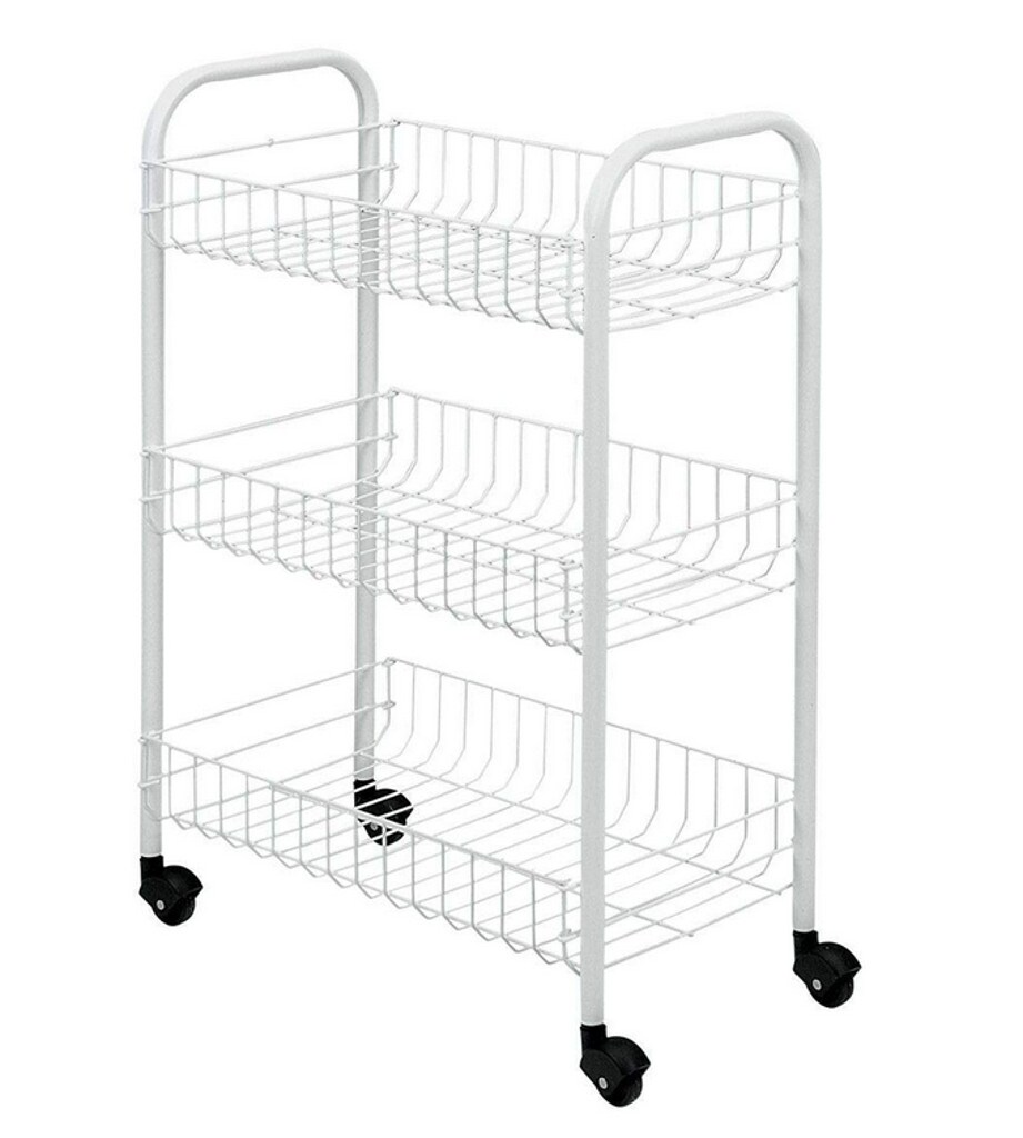 WellHome - Weißer Küchenwagen mit 3 Körben und Rädern 79,5cm