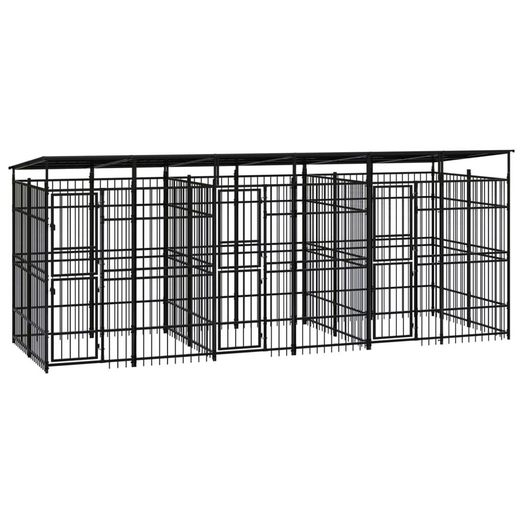 Udendørs hundeløbegård med tag 11,06 m² stål