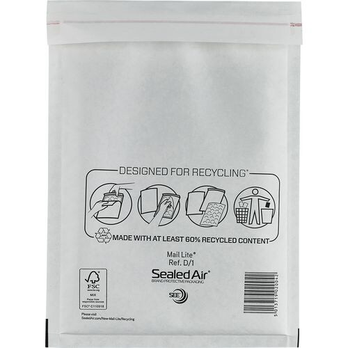 Boblekuvert Mail Lite, D/1, 180 x 260 mm, pakkaus 100 stk.