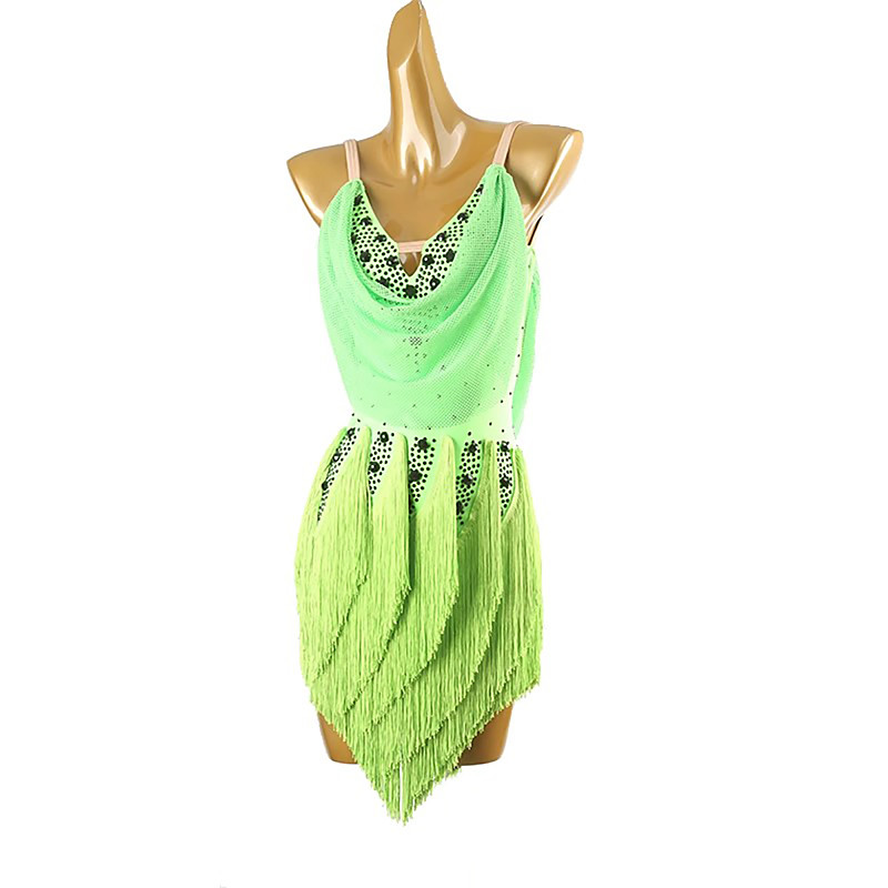 Latin Dance Dress Tassel Crystals / Rhinestones Women's Performance Sleeveless Spandex