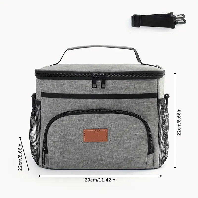 Adjustable Strap Insulated Lunch Bag – Durable Oxford Fabric, Reusable Cooler Tote for Office, School, Picnic Beach, Tear-Resistant Black Thermal Lunch Box, Back-to-School Essential