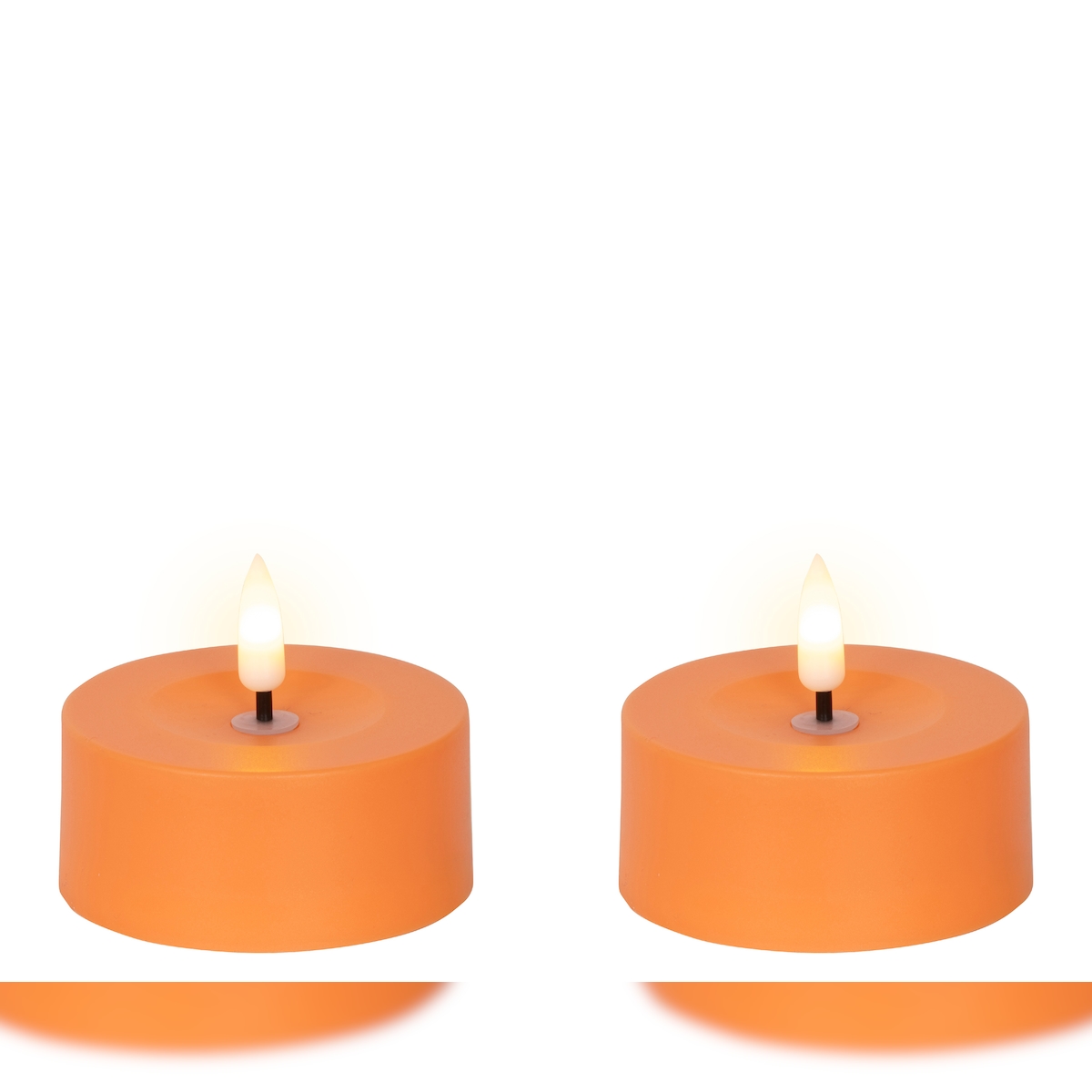 Lumineo Solar LED Teelicht Outdoor 7x3,2cm Kunststoff Outdoorkerzen Flammenlose Teelichtkerzen flackernde Flamme Tischkerzen Dekokerzen Kerzen Orange Warmweiß