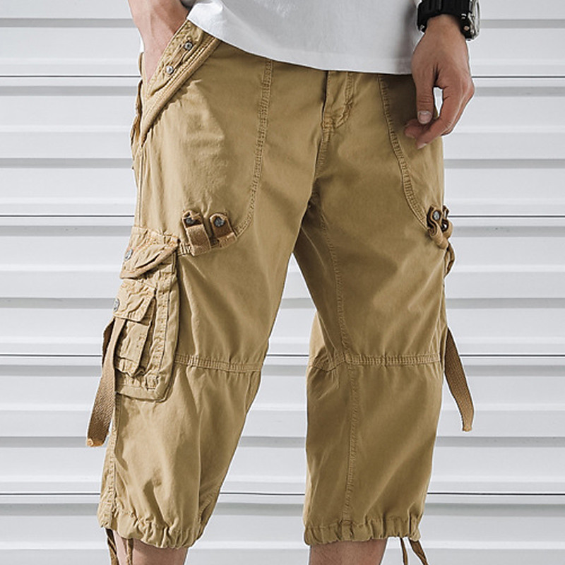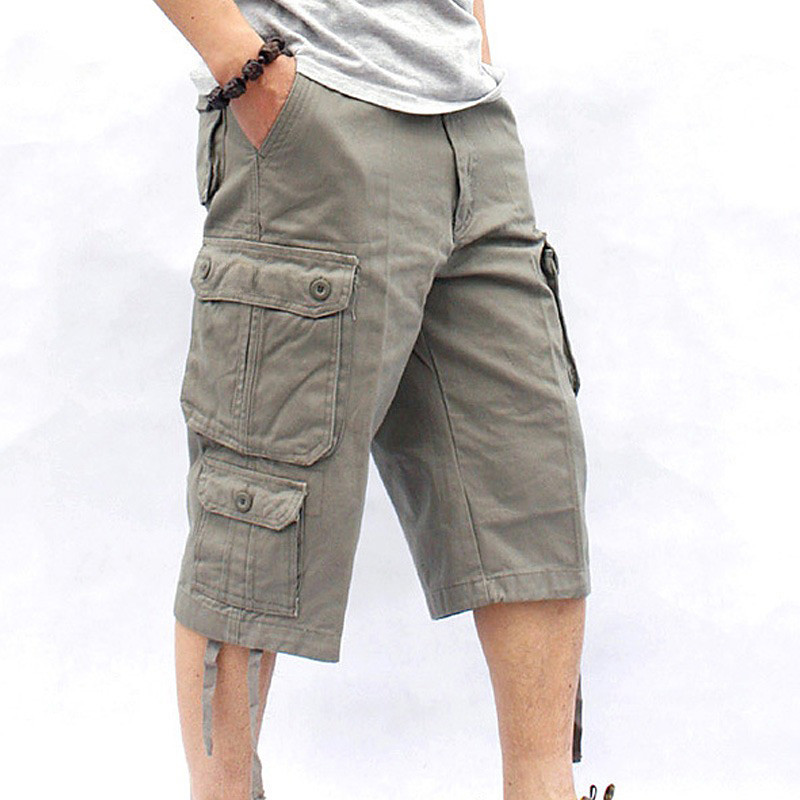 Men's Capri Cargo Shorts Leg Drawstring Multi Pocket Plain Calf-Length Streetwear Classic Style Black Army Green